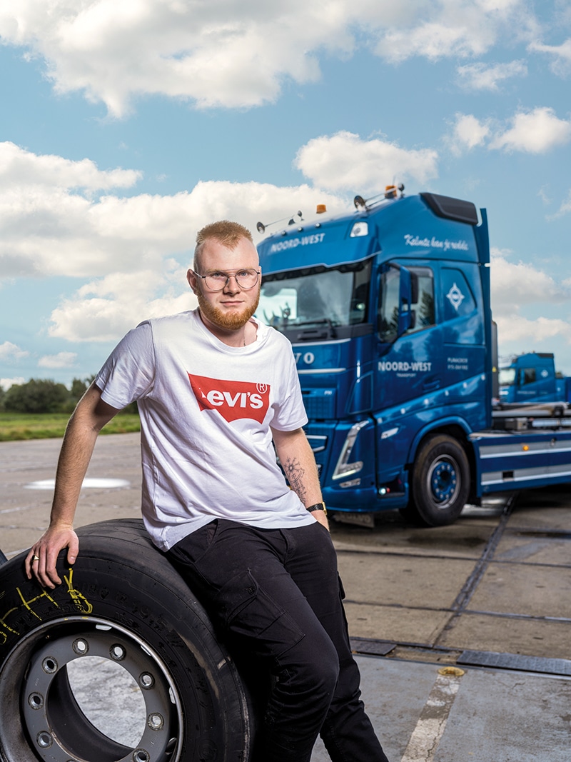 Pascal is de derde generatie chauffeurs in zijn familie. Van jongs af aan weet hij dat hij op de wagen wil. “Ik zou niet weten wat voor ander werk ik zou willen doen.” Eerst rijdt hij bloemen en planten. Dan stapt hij over naar de zeecontainers: “Tot ik het wachten op de terminals helemaal zat was.” Sinds twee jaar werkt hij bij Noord-West Transport. Hij vervoert los gestort afval in de Benelux. “Bij dit werk krijg ik veel beweging. Ik heb zo’n tien adressen per dag. Dus veel in- en uitstappen, aan- en afkoppelen van de aanhanger en het afdekken van de lading met netten en zeilen. Dat bevalt mij goed.”