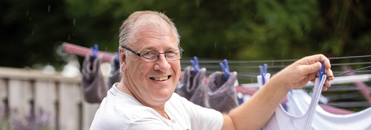 Hij is blij verrast als hij na een paar maanden nieuwe broeken moet kopen. “Zelfs met een riem om zakte mijn oude broek af. Ik woog nog maar 82,5 kilo en ben in een halfjaar 12 kilo afgevallen. Daar ben ik trots op!”