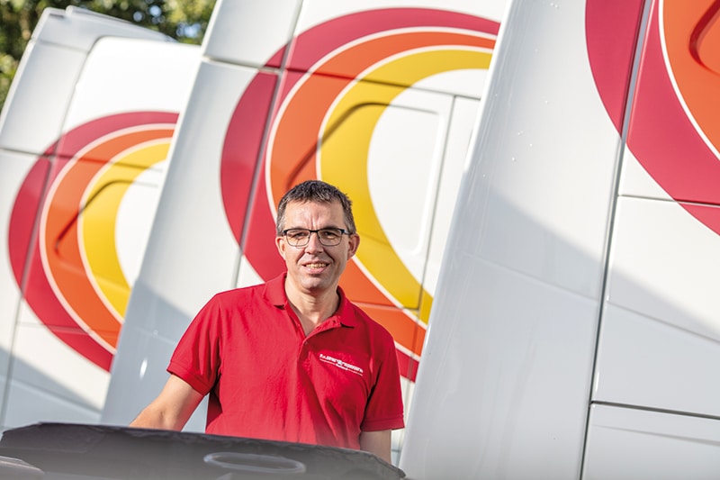 “Internationaal rijden past mij; het is mijn lust en mijn leven. De vrijheid, andere landen, elke week een nieuwe puzzel: waar kan ik draaien met lengte, hoe los ik het veilig op? Dat spelletje vind ik mooi. Ik zit in het ‘open werk’ – lengte, breedte, hoogte is steeds anders. De open rijders zijn een hechte club; je gunt elkaar het beste en kunt op elkaar bouwen. Mijn vriendenkring bestaat vooral uit collega’s hier.
