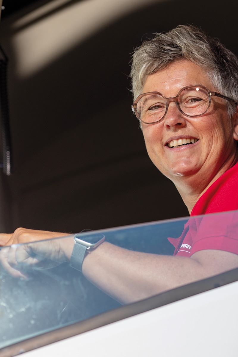 Ik werk nu zo’n twee jaar bij Van Setten; het is nog leuker dan ik dacht. De sfeer is goed, collega’s staan altijd voor elkaar klaar en vrouwen worden hier serieus genomen. Meestal rijd ik nachtritten naar België en stap ik al om 03.00 uur in mijn eigen truck. Vroeg, inderdaad, maar precies het ritme dat me past.