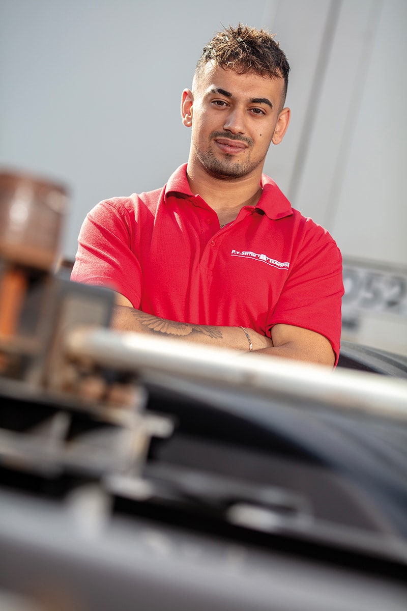Ooit begon ik aan een ICT-opleiding, maar in coronatijd verloor ik hiervoor mijn motivatie. Transport trok me al langer, en via een versneld BBL-traject maakte ik de overstap. De afwisseling als chauffeur past me veel beter dan een dag achter een scherm. Ik werk nu bijna twee jaar bij P. van Setten, meestal in de middagdiensten. Rond drie uur ’s middags start ik, tegen middernacht ben ik klaar.