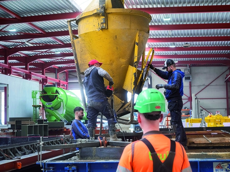Youri rijdt bij Ahorn Bouwsystemen in Zutphen achteruit de grote loods in. Zijn losgoot hangt hij boven een gele kubel. Dit is een trechtervormig stalen vat dat gebruikt wordt om betonmortel te vervoeren. Op het teken van een medewerker van Ahorn lost Youri de eerste lading. De kubel is tot aan de rand gevuld. Met een bovenloopkraan wordt het gevaarte naar de bekisting gebracht. Medewerkers lossen de kubel met de hand. “Wat ze nu aan het maken zijn, wordt het dak van een elektriciteitshuisje,” zegt Youri. “En die man die met een soort stofzuiger in het gestorte beton prikt, haalt de lucht eruit.” De laatste druppels betonmortel worden uit de kubel geschud. Daarna volgt de tweede lading. Youri vertelt dat dit nog wel even gaat duren: “In een kubel past 1,5 kuub. Het is nu 15.00 uur en ik moet nog zes à zeven kubels vullen. Als ik klaar ben, rijd ik terug naar Lochem en ben ik klaar voor vandaag.”