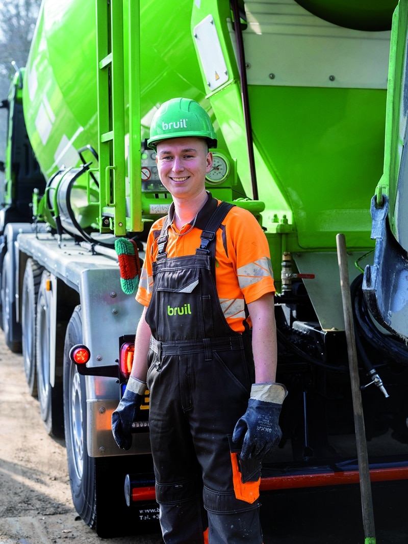 Over een tijdje ga ik ook beton laden bij een project waar ik zelf bij betrokken ben. Want samen met mijn vriendin Nienke heb ik een nieuwbouwhuis gekocht. Als ze starten met de bouw, breng ik het beton dat ze nodig hebben. Dit werk blijf ik nog jaren doen. Ik vind het prachtig. Misschien wil ik later mengmeester worden. Het lijkt me mooi om al die verschillende soorten beton te maken.”